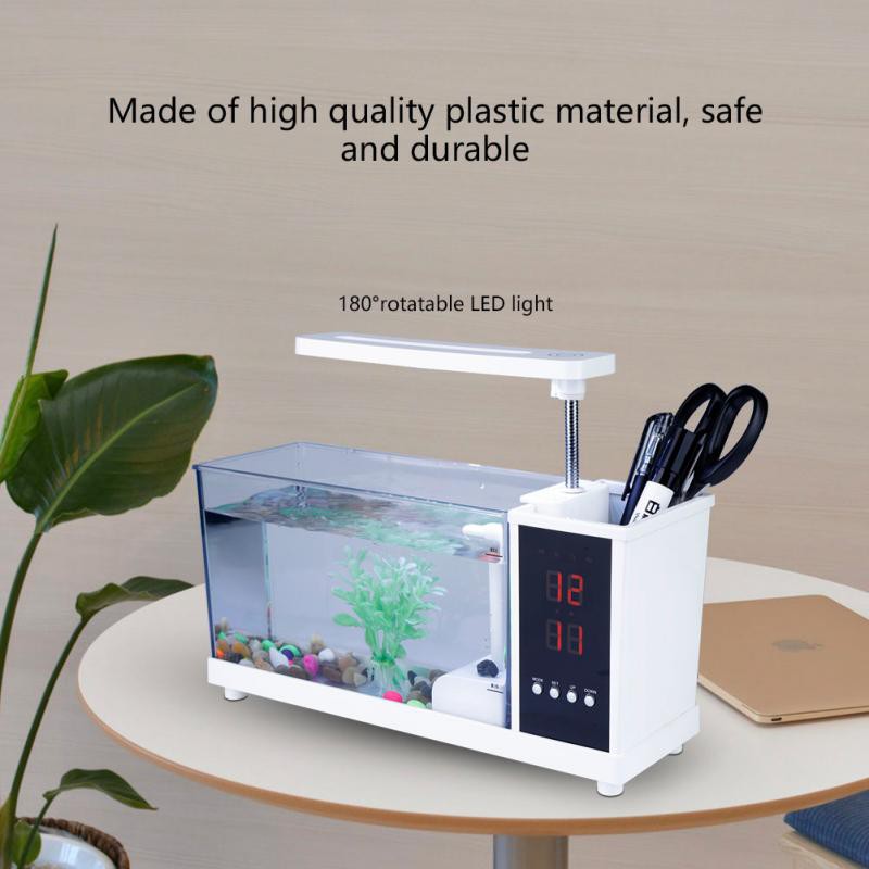 | Desktop usb rechargeable mini fish tank aquarium with clock function |