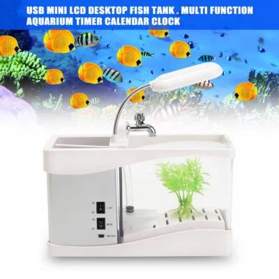 Zydeco Usb Desktop Mini Fish Tank Aquarium With Lcd Time Clock